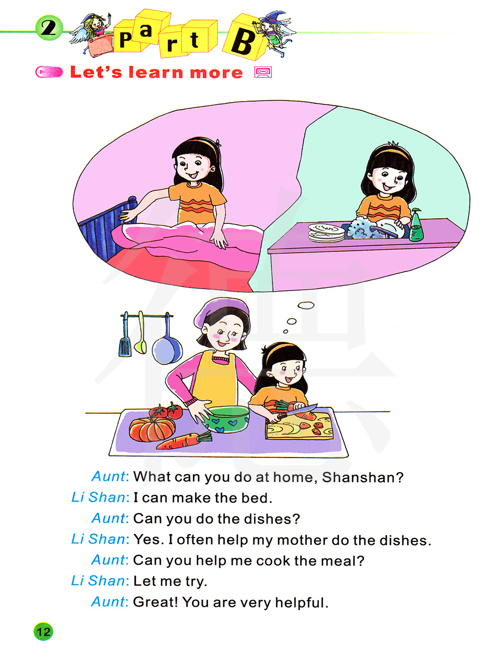 你会洗餐具吗? 会。我经常帮我妈妈洗餐具。你能帮助我做饭吗?