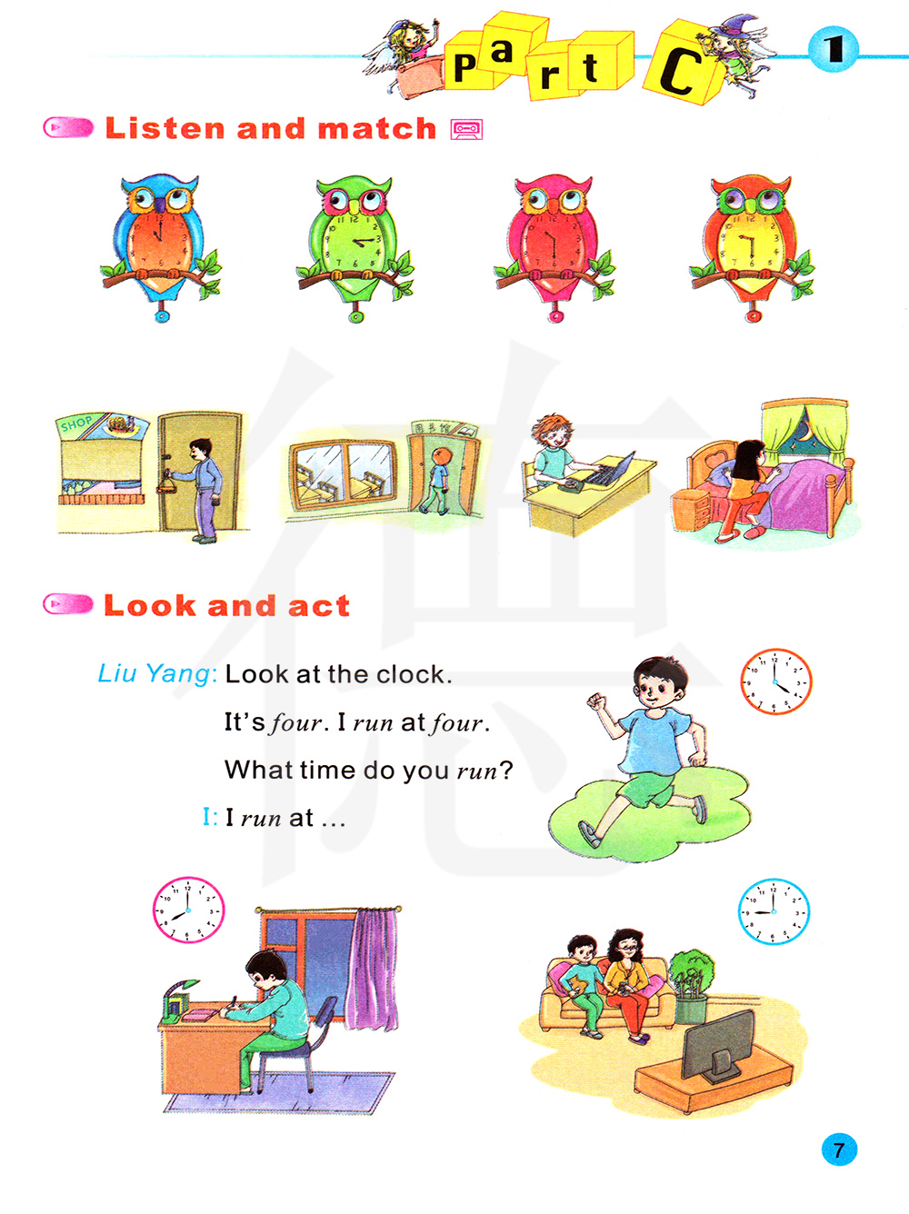 看看闹钟,现在是四点,我在四点跑步,你在什么时候跑步呢?