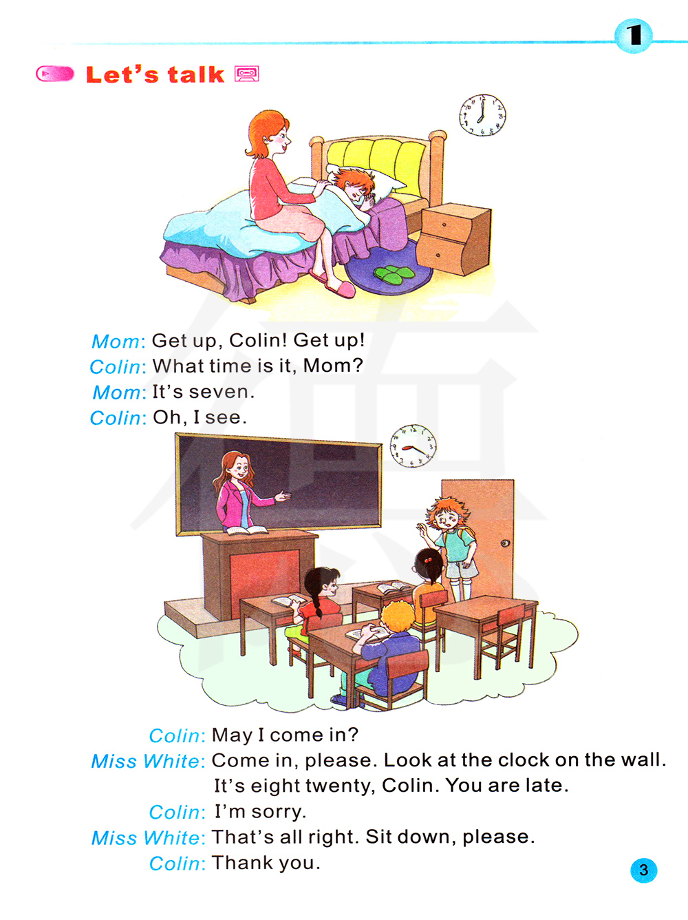 我可以进来吗? 请进。 看看墙上的时钟。 都八点二十了,科林。你迟到了。