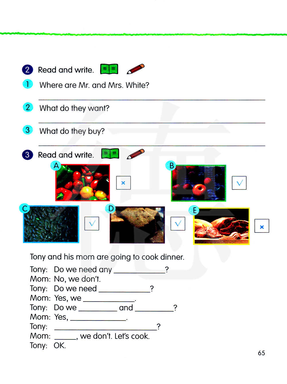 1.怀特夫妇在哪里? 2.他们想要什么? 3.他们买了什么呢?