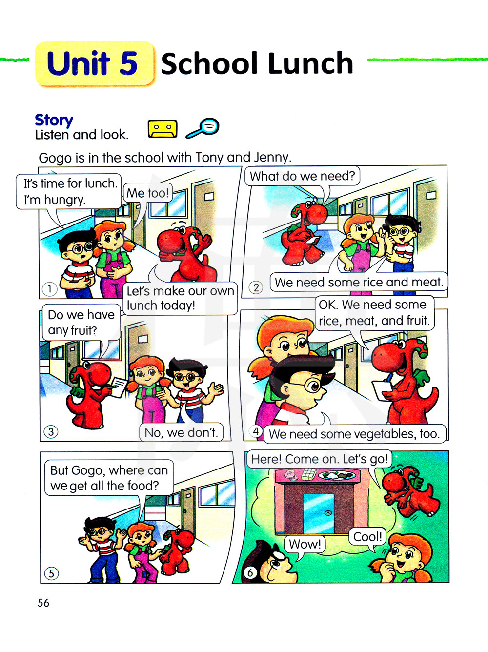 故事。 听一听,看一看。 咯咯,托尼和詹妮在学校。