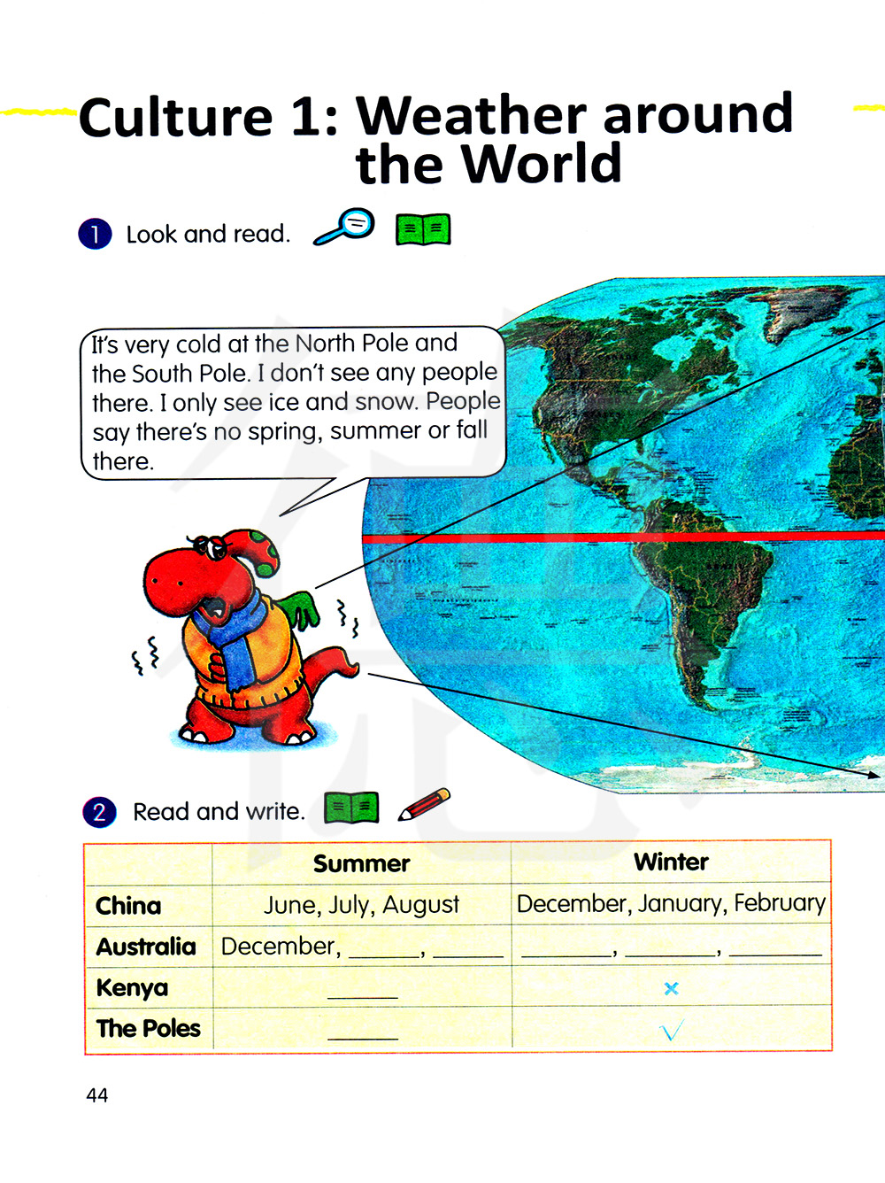 文化一:世界各地的天气。 1.看一看,读一读。
