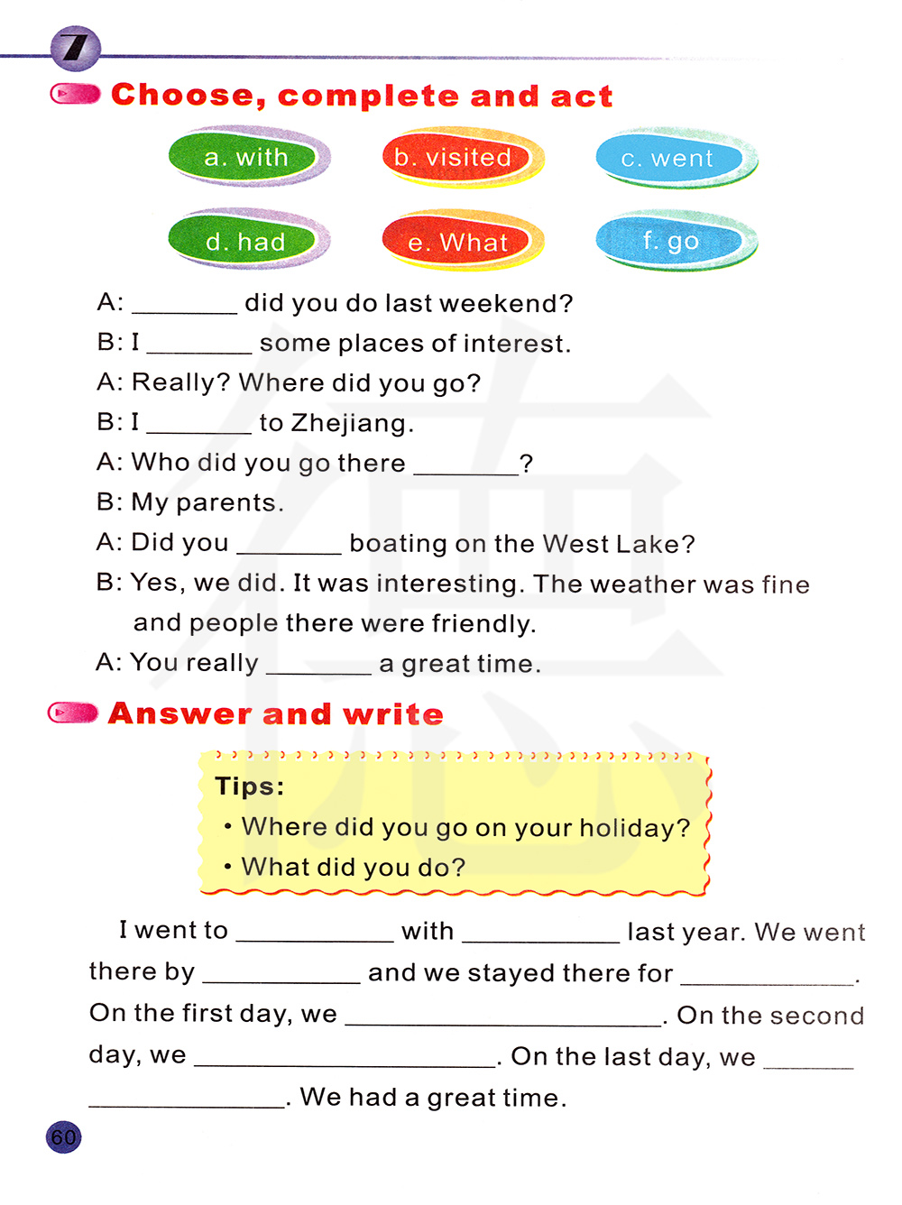 提示:你假期去了哪里?你做了什么?