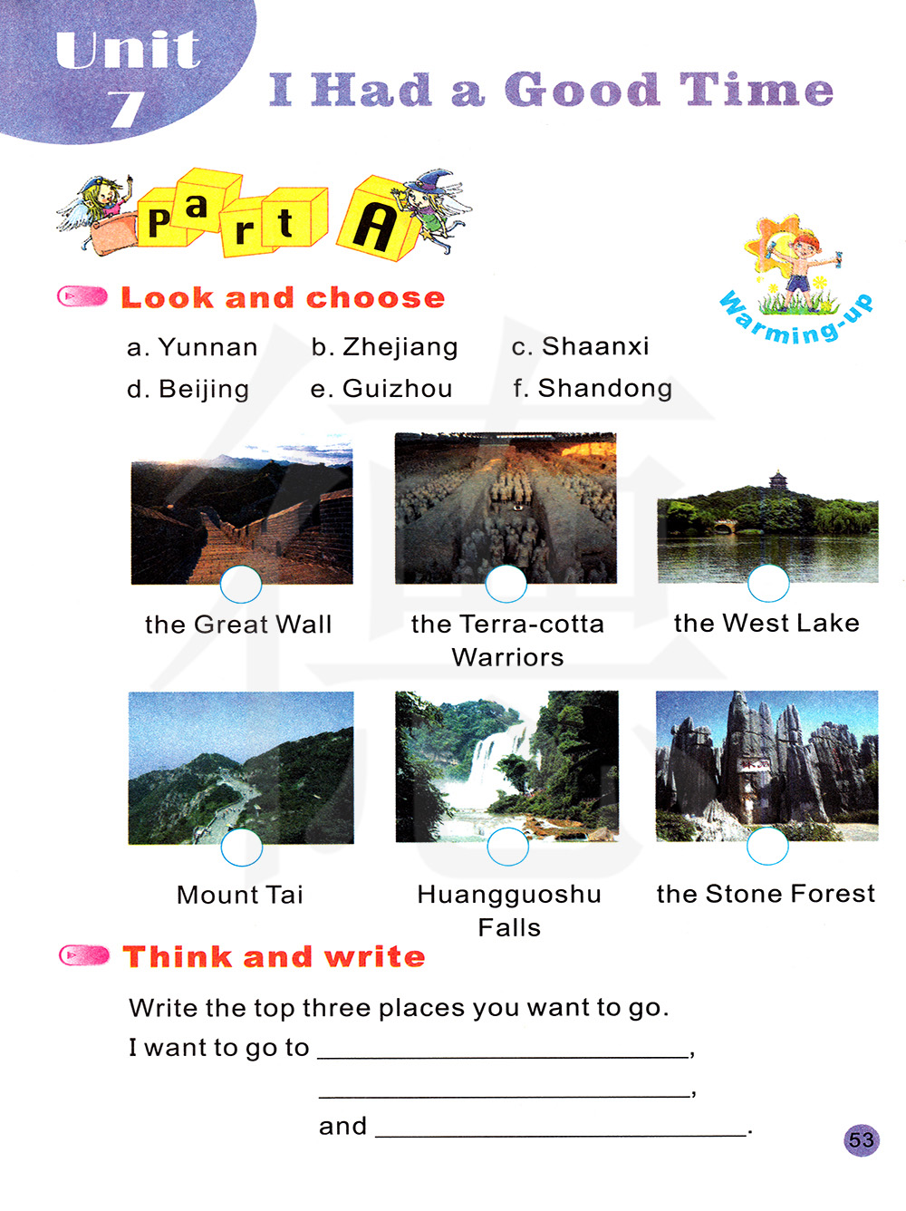 学习目标:1、能听、说、读、写短语play beach volleyball,visit the museum,buy some gifts,eat sea food,make a cake