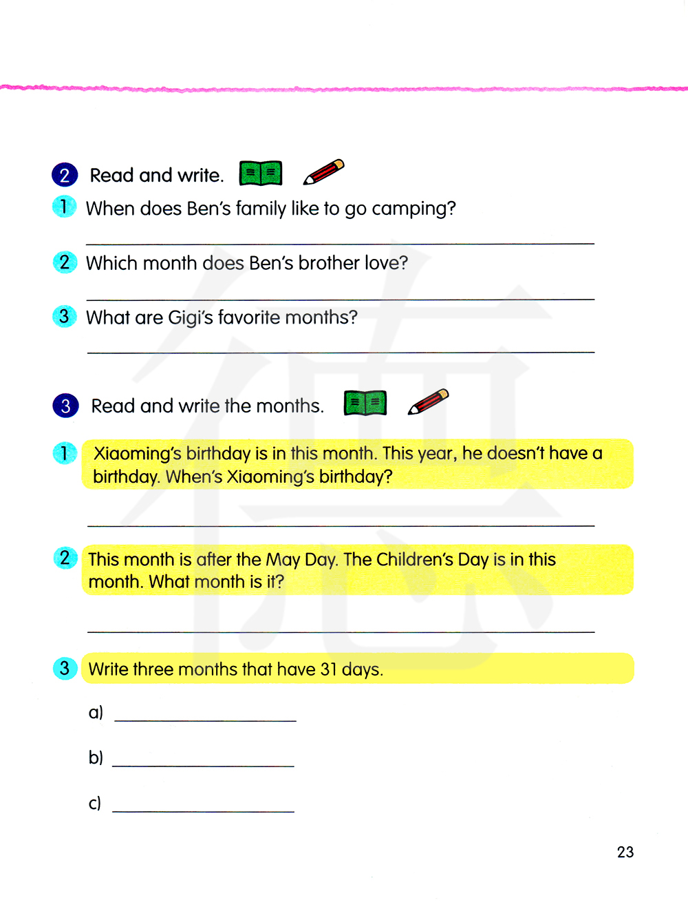 3.读一读并写一写这些月份
