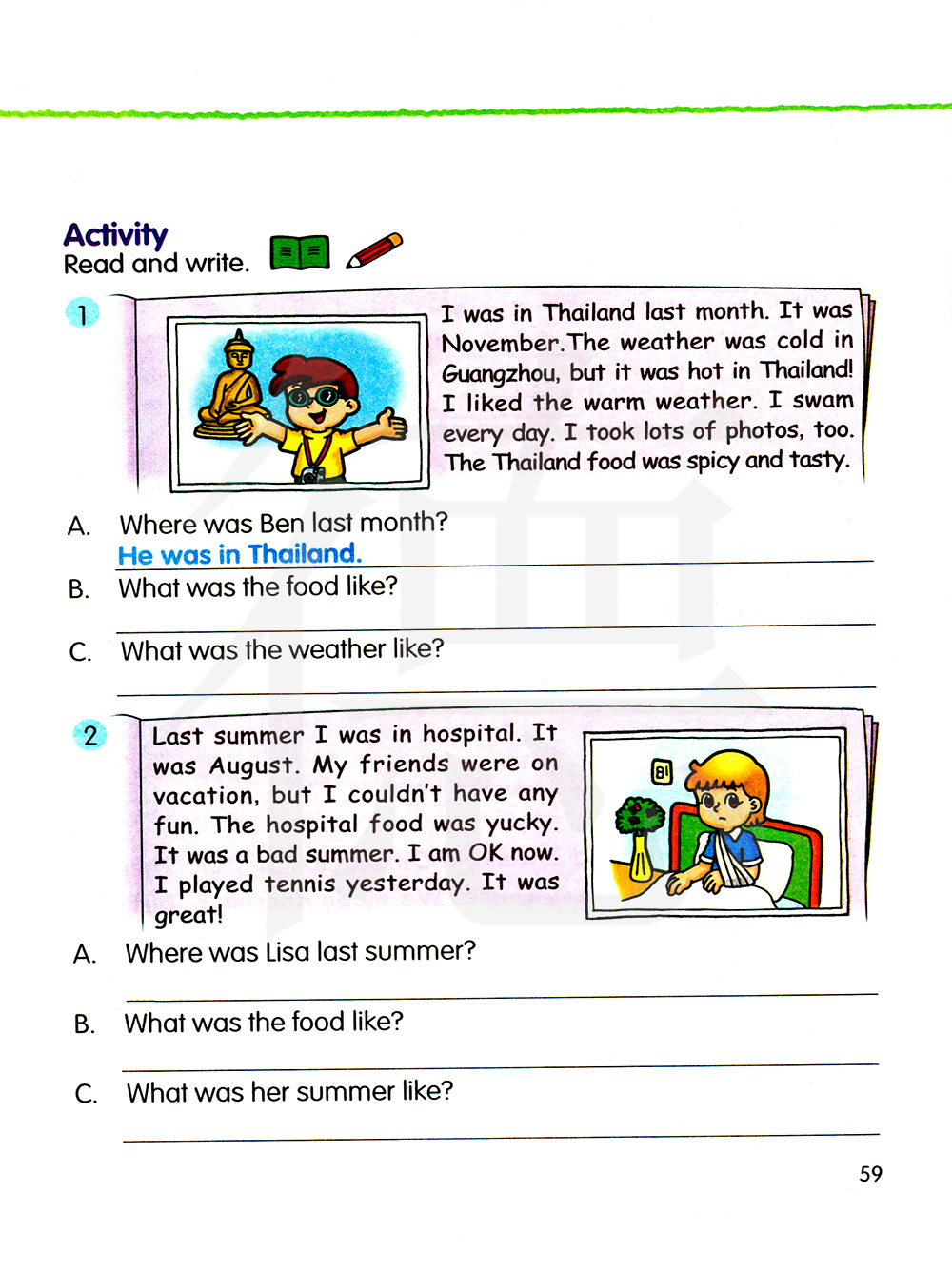 1.上个月我在泰国,那是11月,广州的天气很冷,但是泰国很热,我喜欢暖和的天气,我每天去游泳,我还拍了很多照片,泰国的食物又辣又美味。