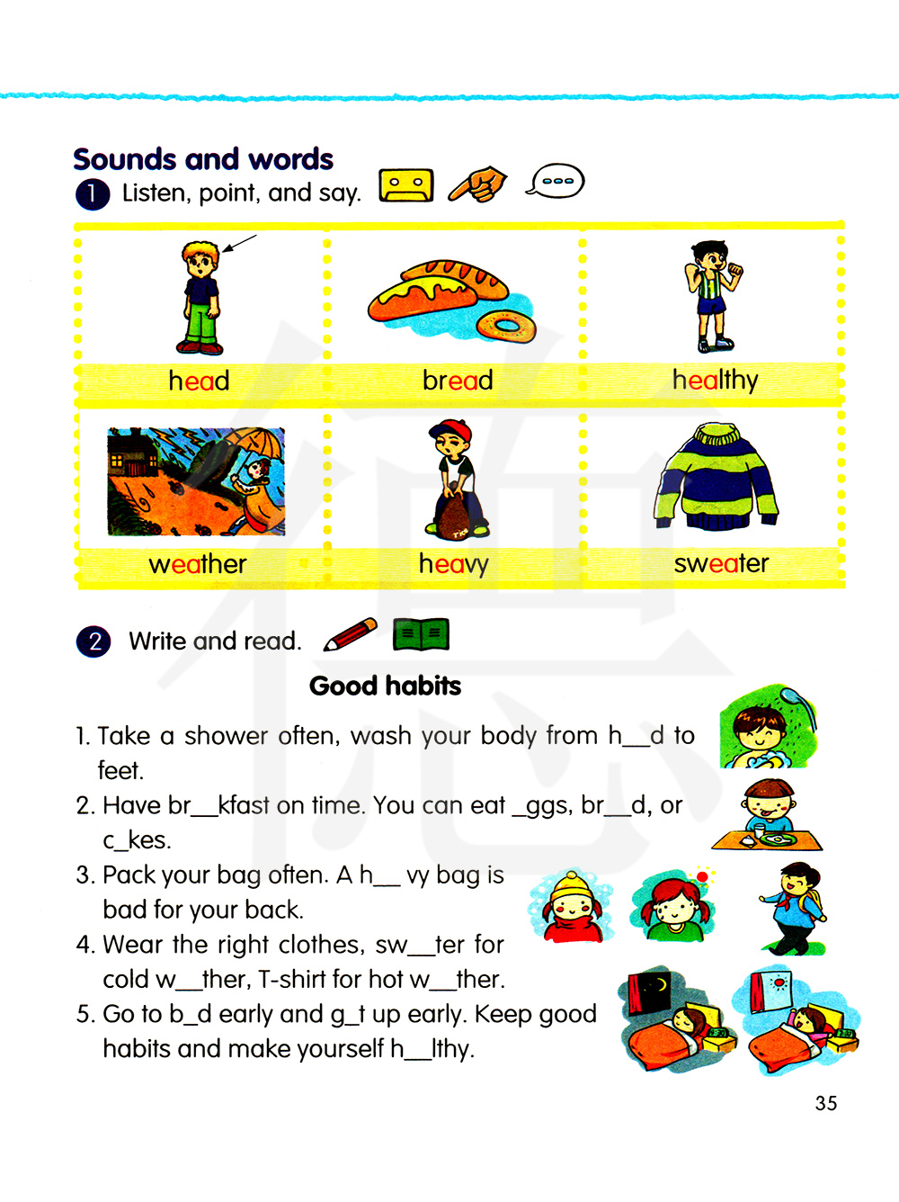 1 听录音,指出图片并说一说。