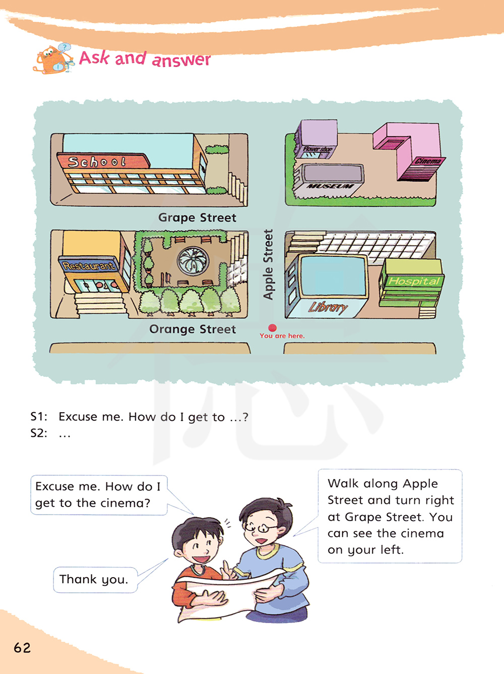 沿苹果街直走并在葡萄街右转,你可以看到电影院就在你的左边。