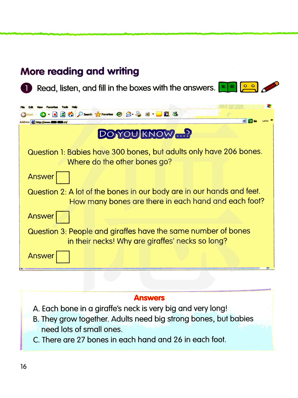 1 阅读,听录音,并在方框中填入答案。