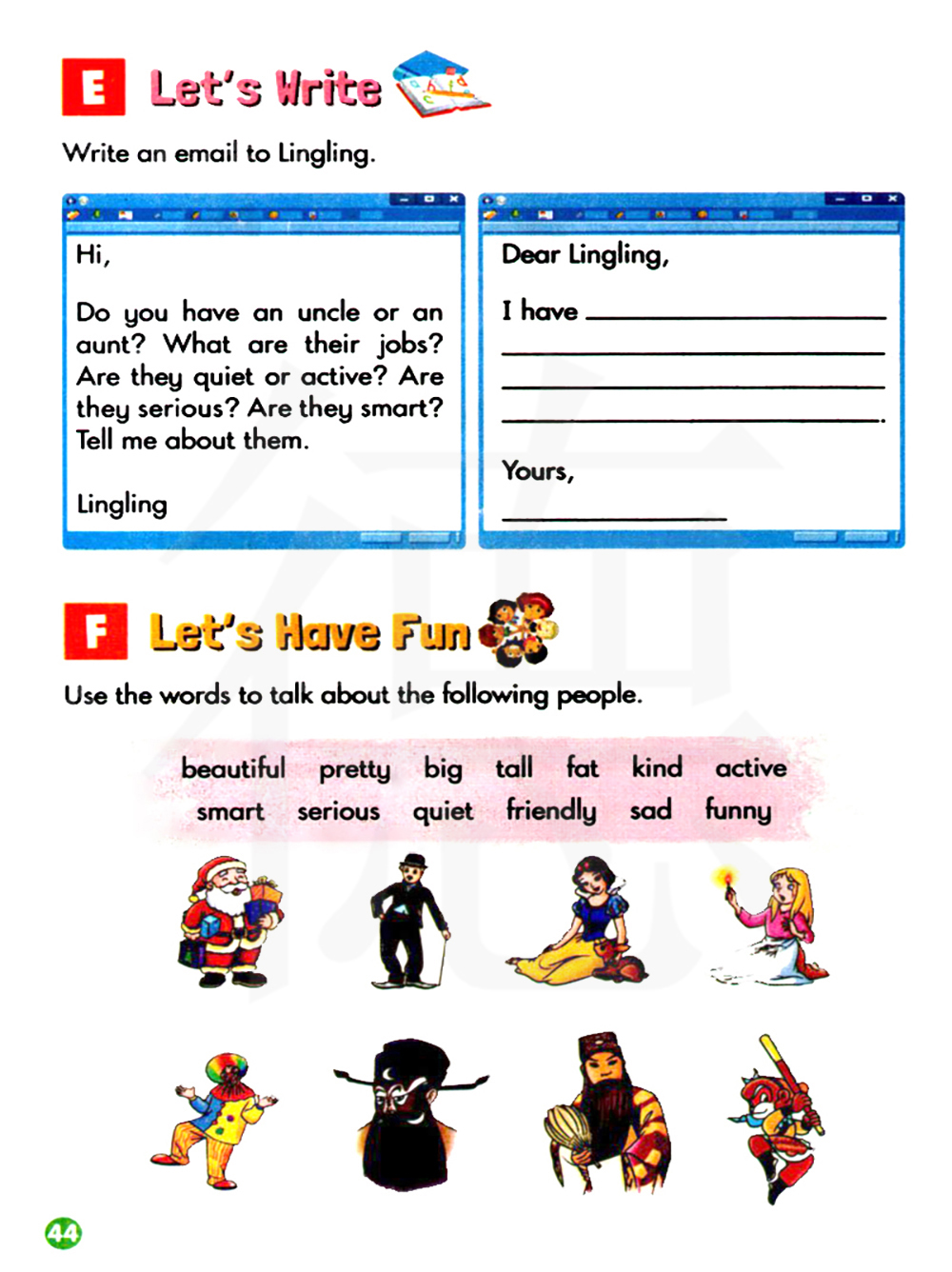 让我们玩的开心。 使用这些单词谈论下列人物
