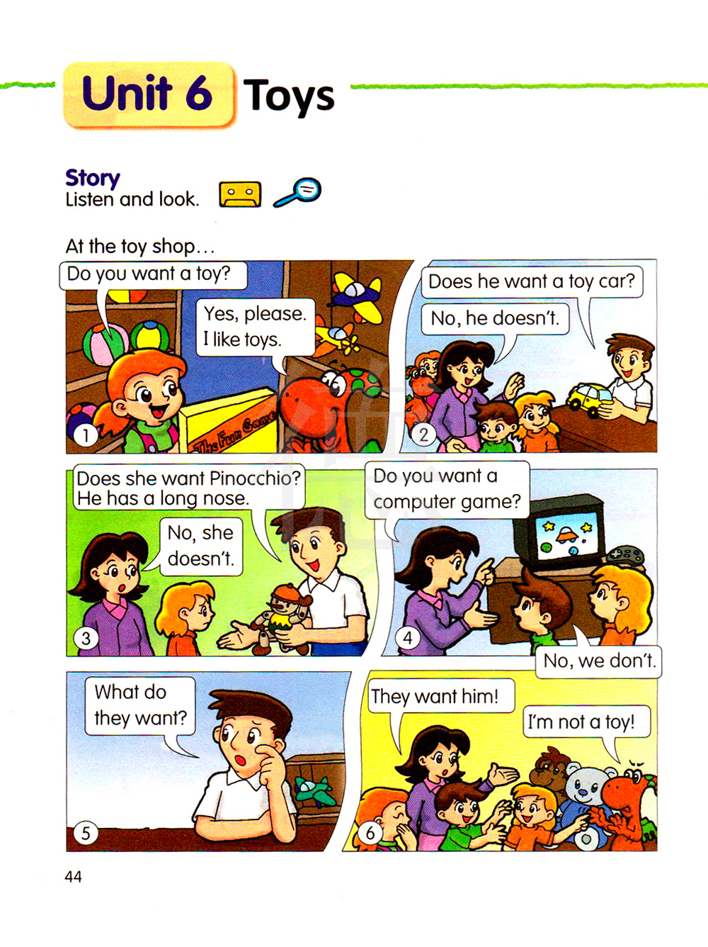 1. a doll一个洋娃娃 2.a computer game一个电子游戏 3. a toy bear一个玩具熊