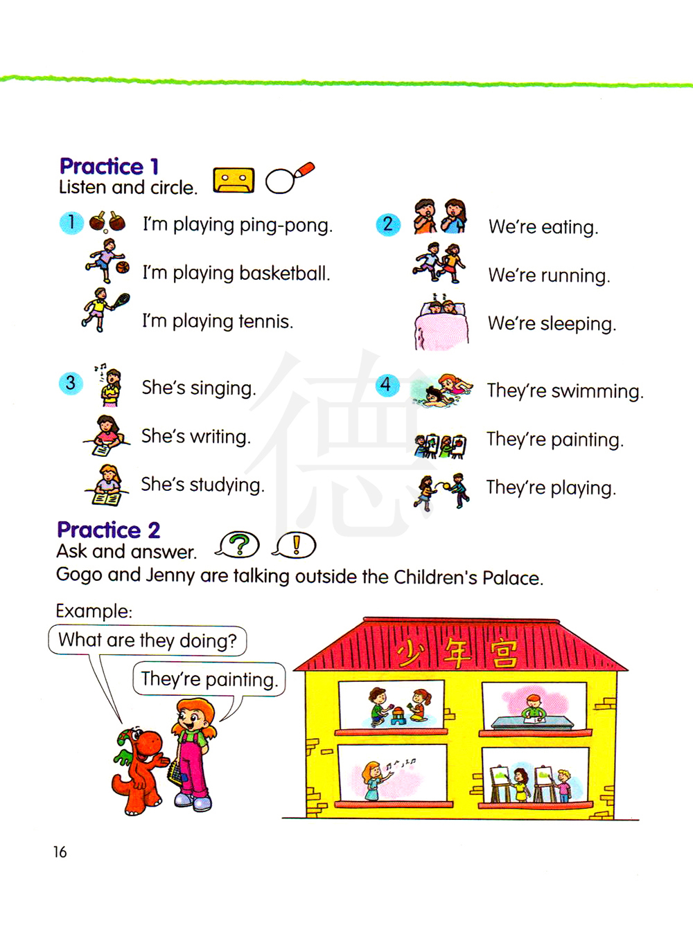 练习二 问和答 勾勾和詹妮在少年宫的外边交谈。