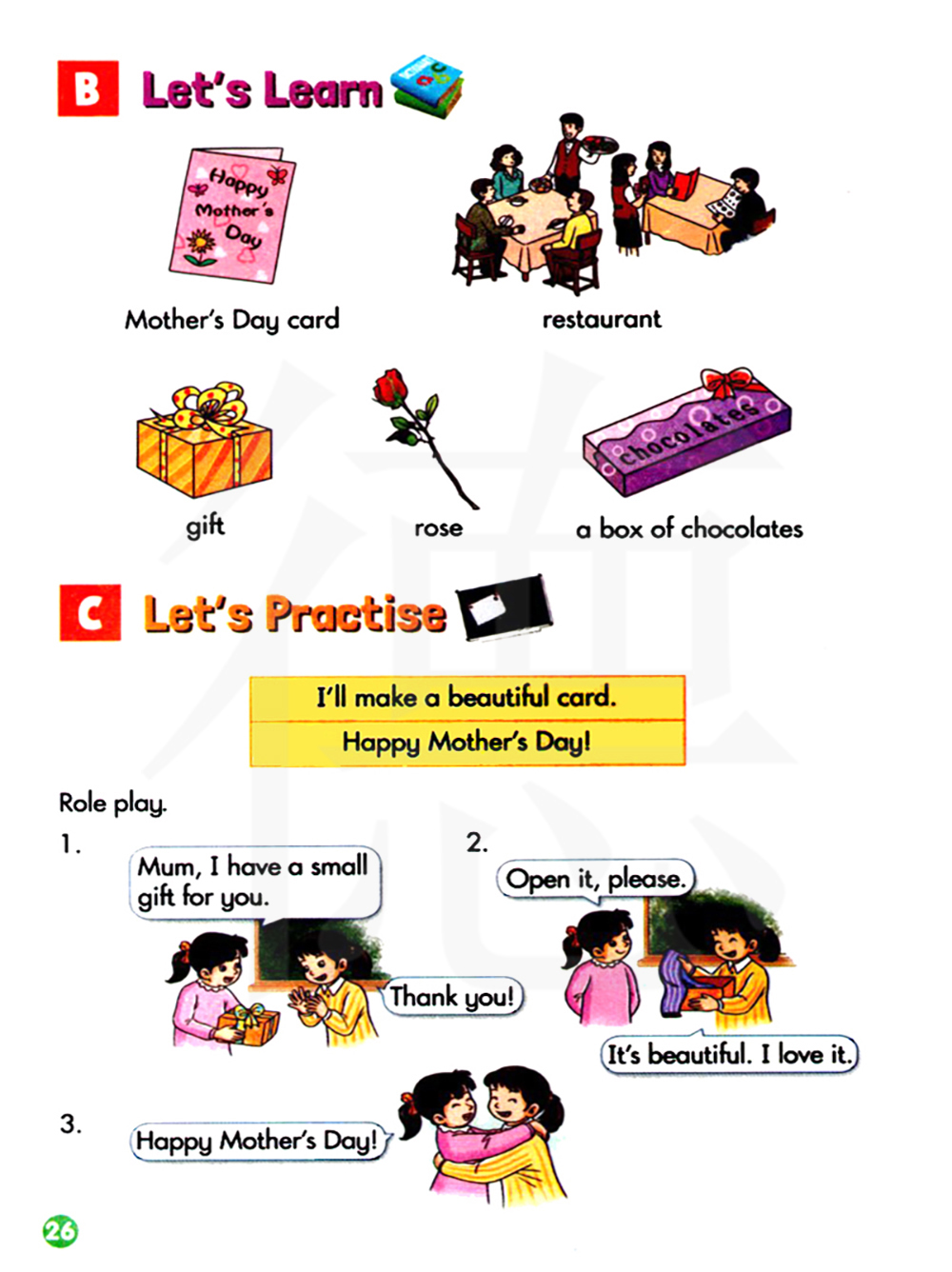 我将会做一张漂亮的贺卡。 母亲节快乐