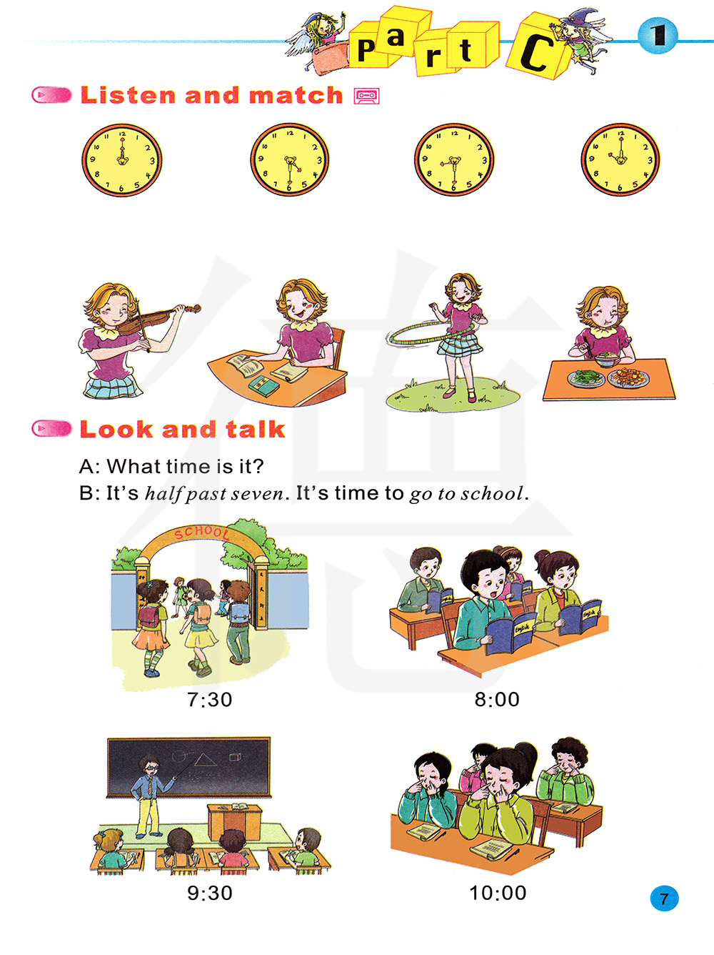 几点了?七点半,该上学了。