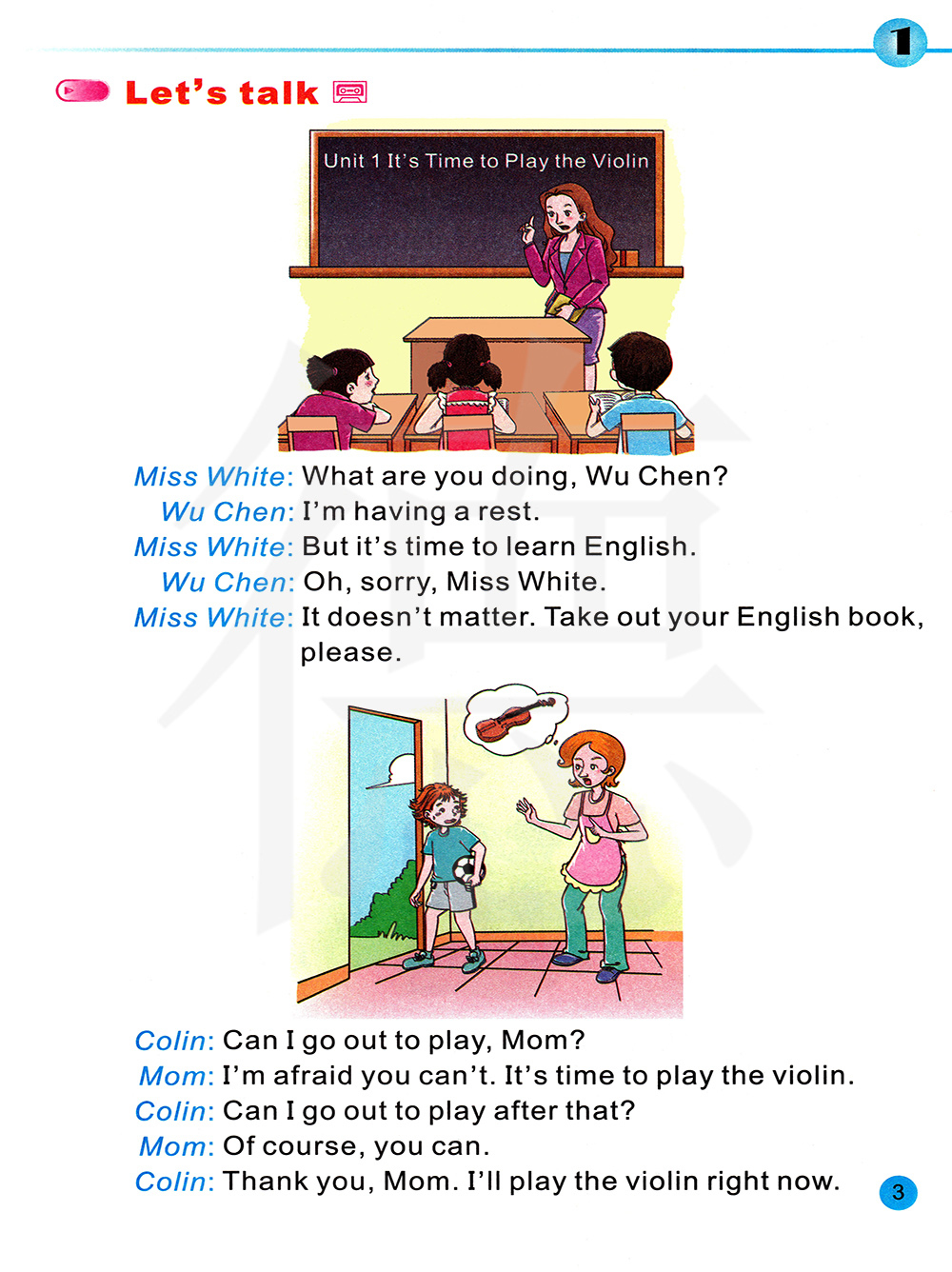 我可以出去玩吗,妈妈?恐怕不行。拉小提琴的时间到了。