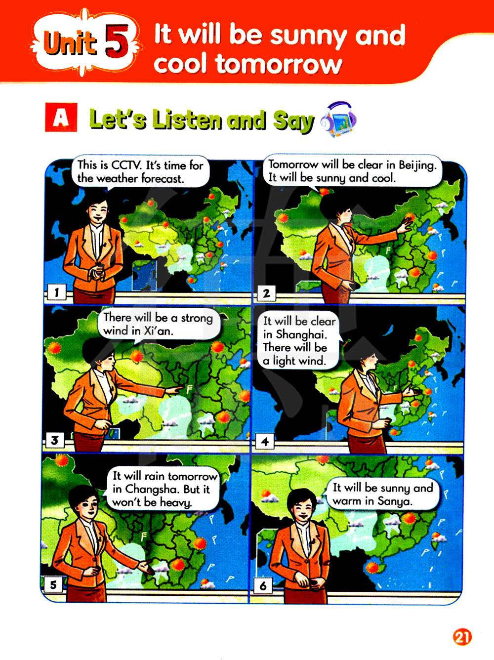 这里是中央电视台。现在是天气预报时间。明天北京晴。阳光灿烂而凉爽。