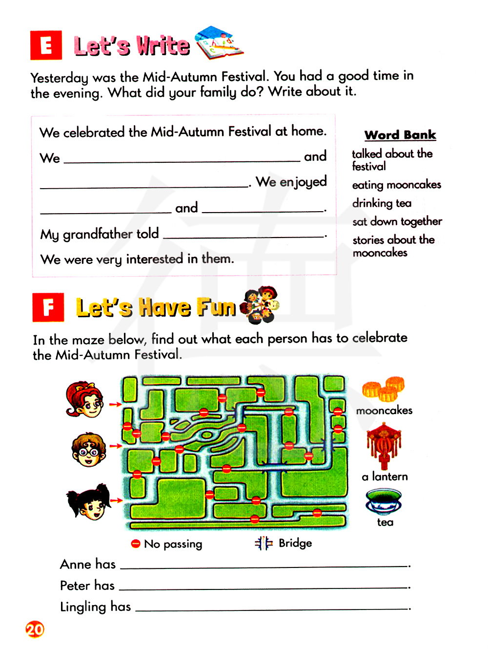 在下面的迷宫里,找出每个人都做了什么来庆祝中秋节