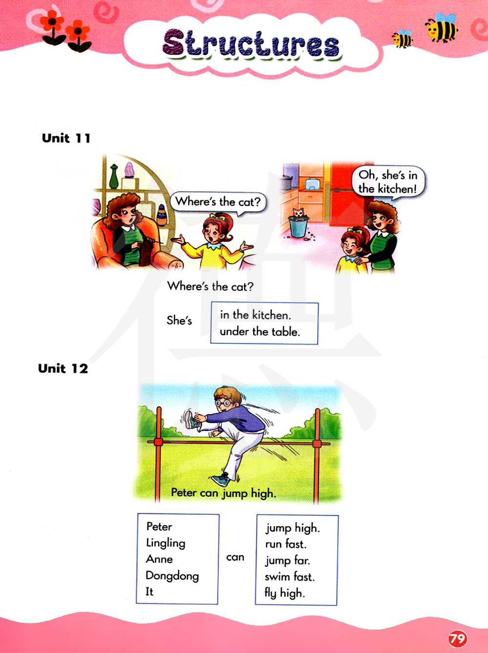 彼得可以跳的很高,玲玲可以跑得很快,安妮可以跳的很远,东东可以游很快,它可以飞的高