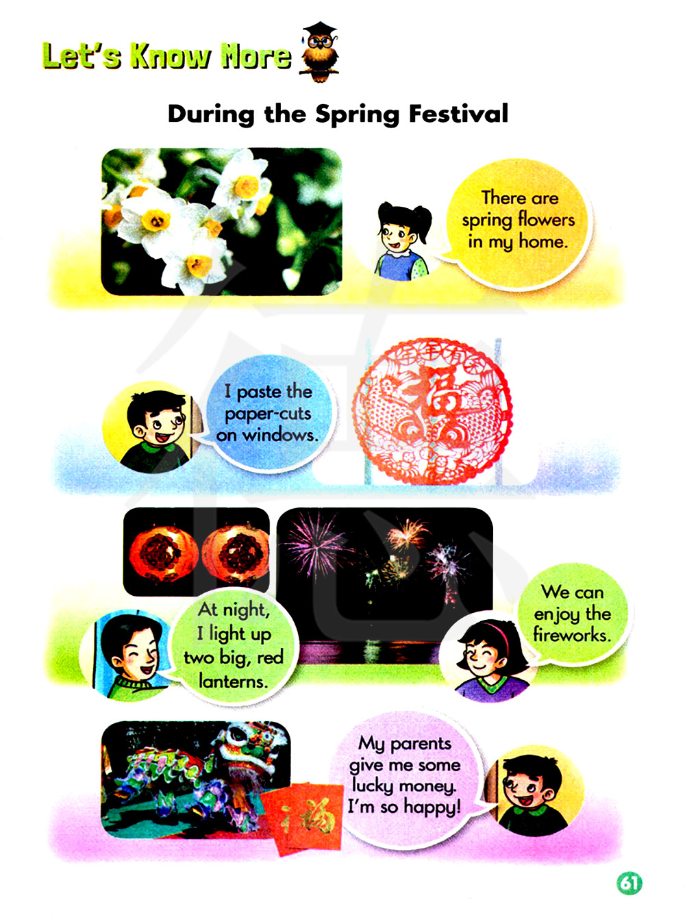 我的父母给我一些压岁钱。我真高兴!