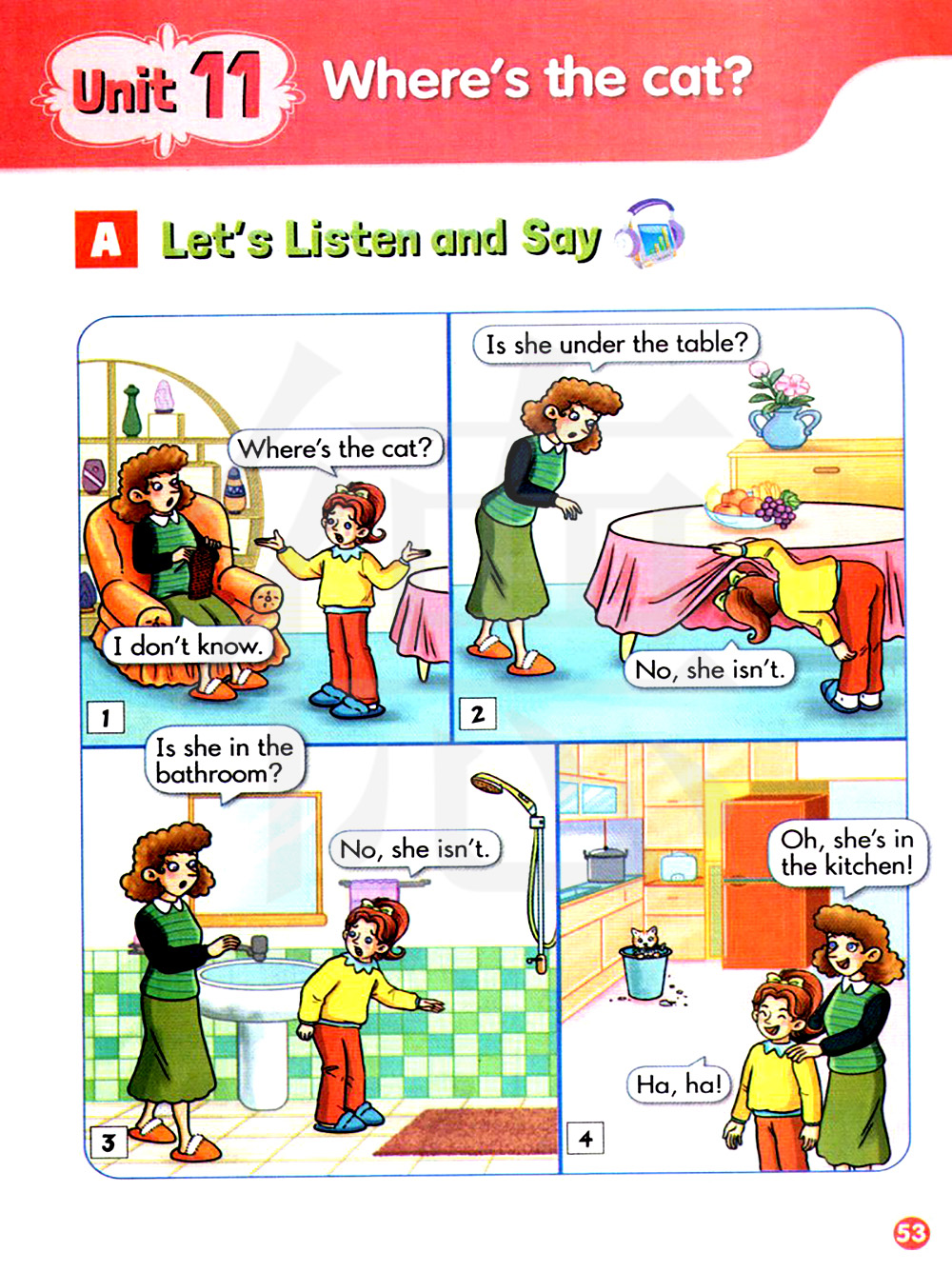 where哪里 under在?下面 in 在?里面 bathroom 浴室 kitchen 厨房