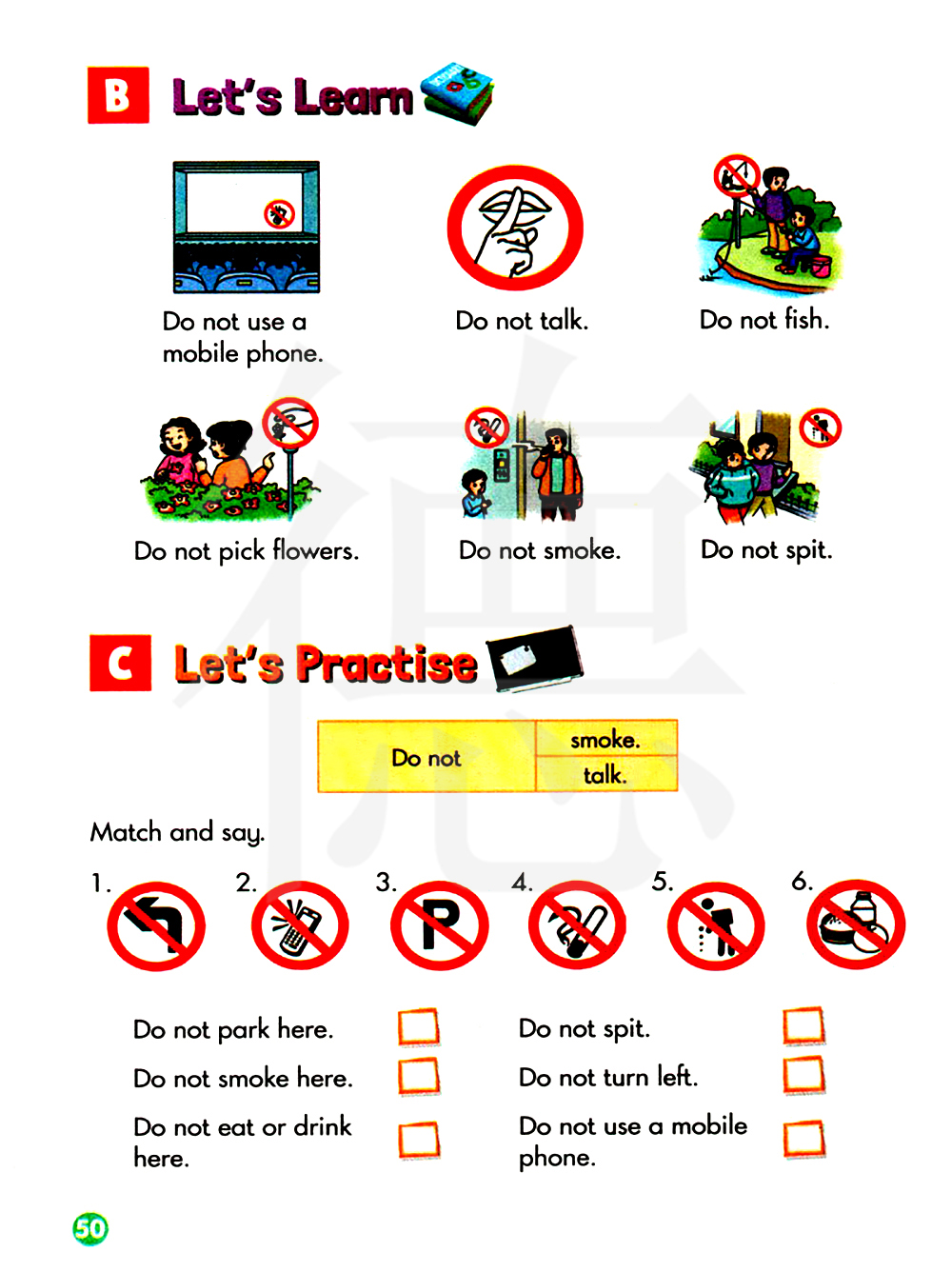 这里禁止停车 。这里禁止吸烟 。这里不要吃或喝东西。