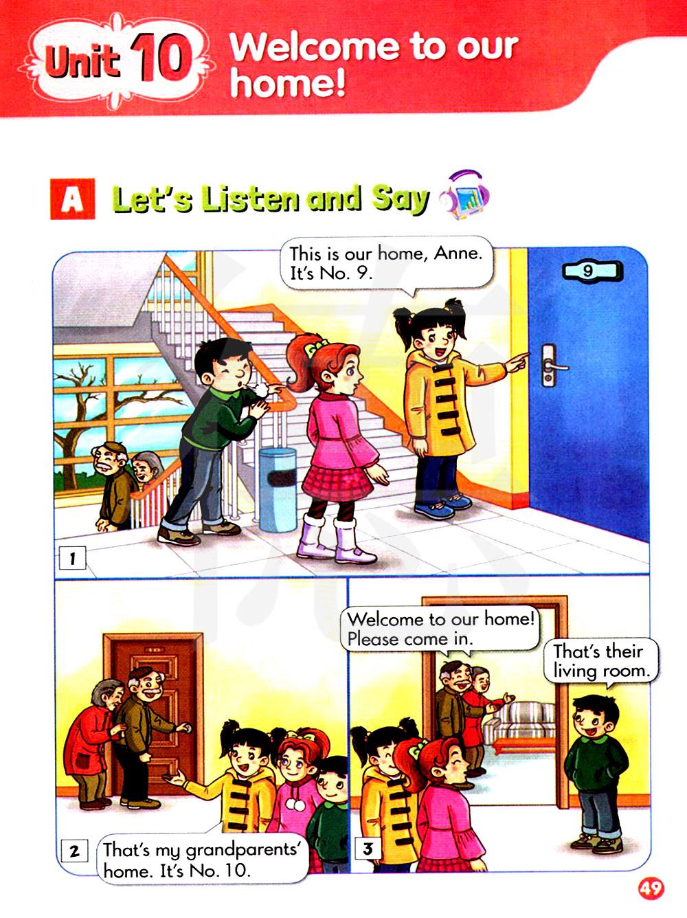 单词:flat旗 number号码 their他们的 in front of 在....前面 door门