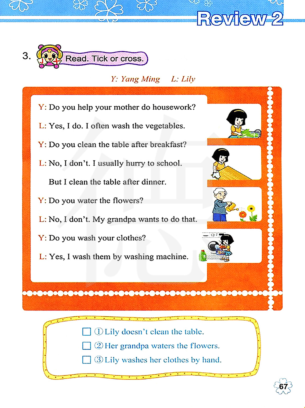 你帮你妈妈做家务吗?是的,我做。我经常洗菜。