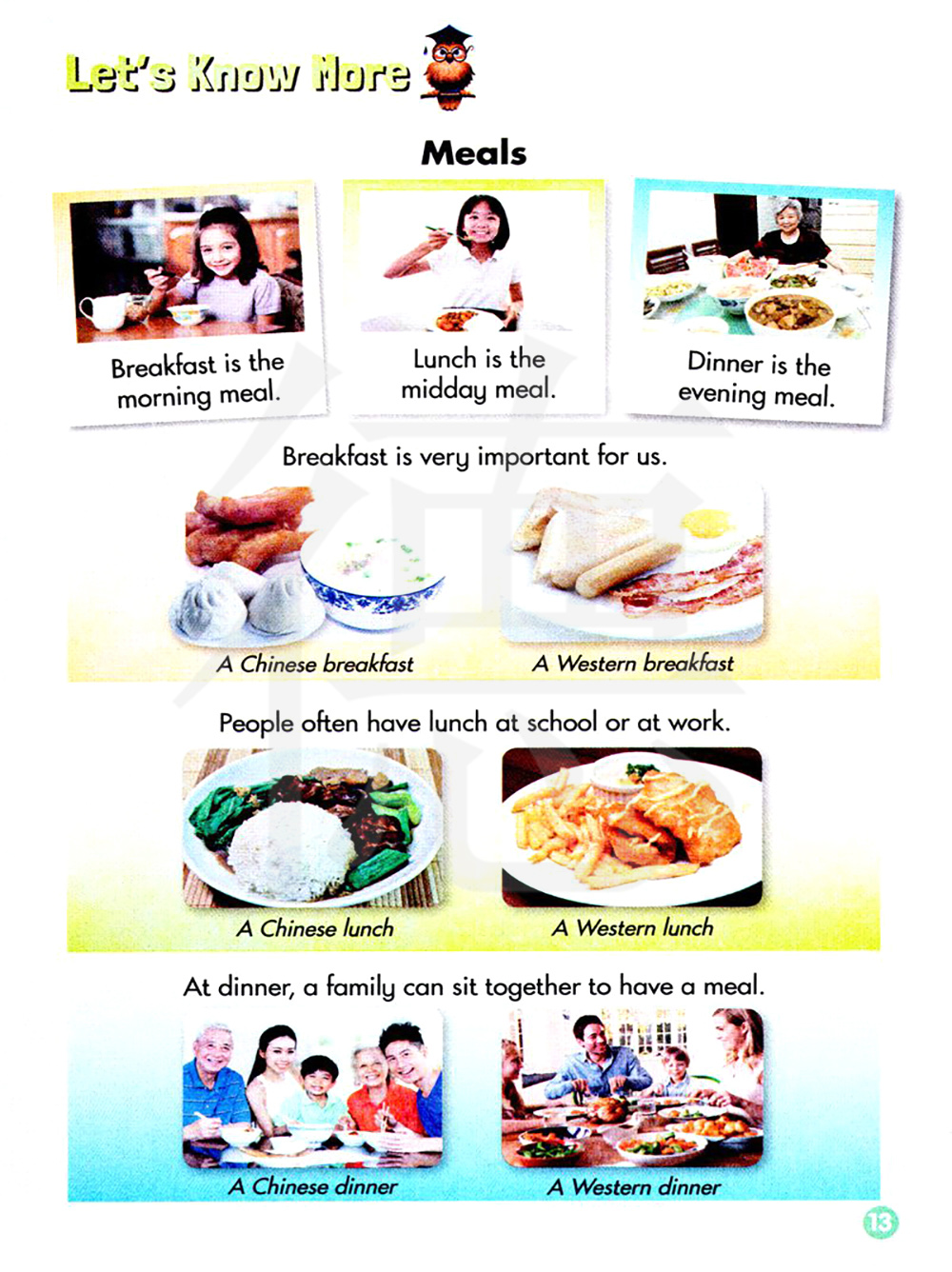 人们常常在学校或工作的附近吃午餐。 中式午餐 ,西式午餐