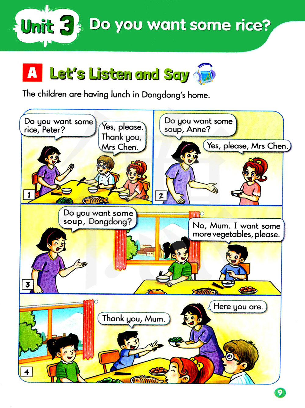 一起来听一听,说一说。孩子们正在东东家吃午饭