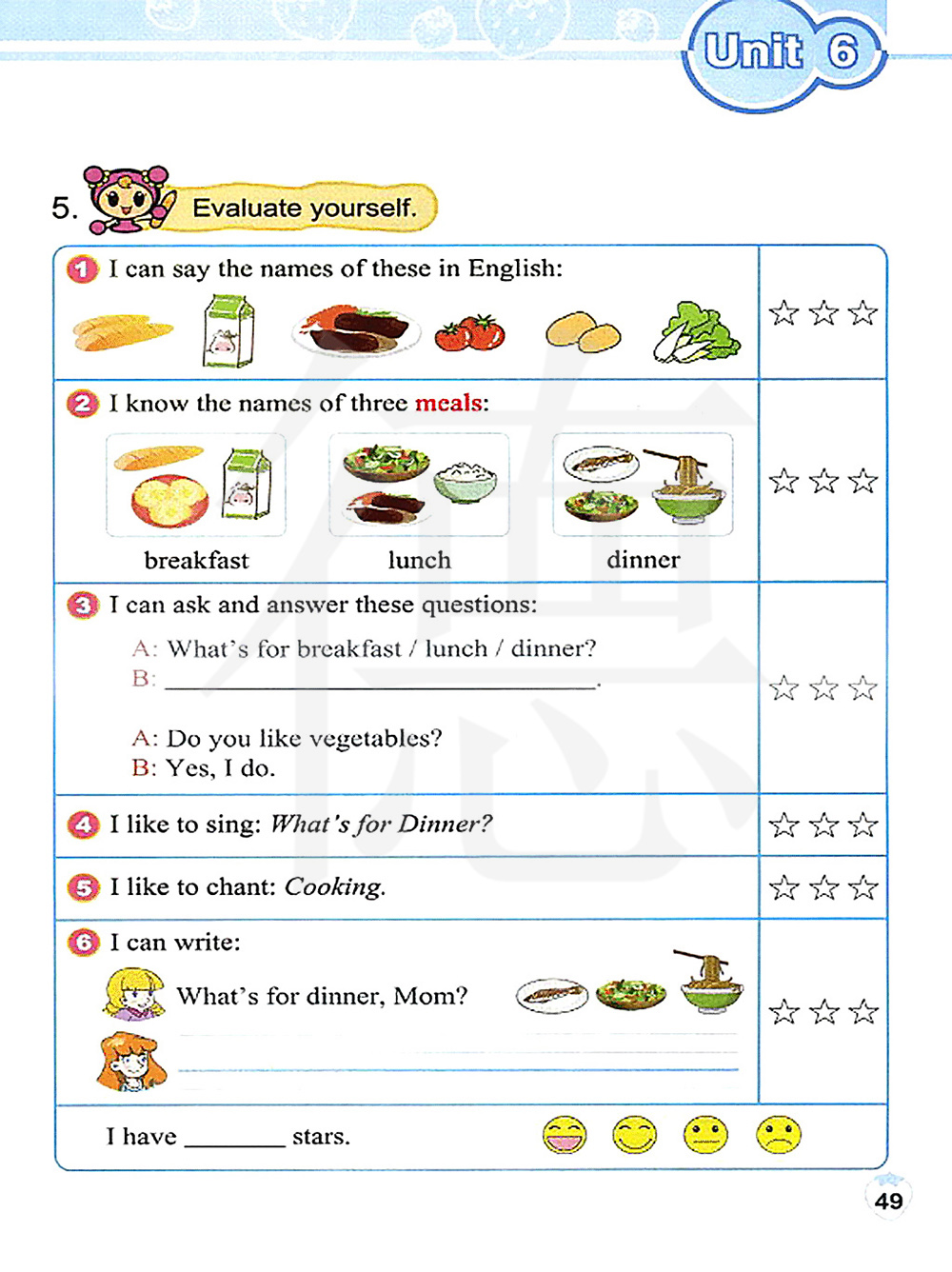 早饭/午饭/晚饭吃什么?你喜欢蔬菜吗?是的,我是。