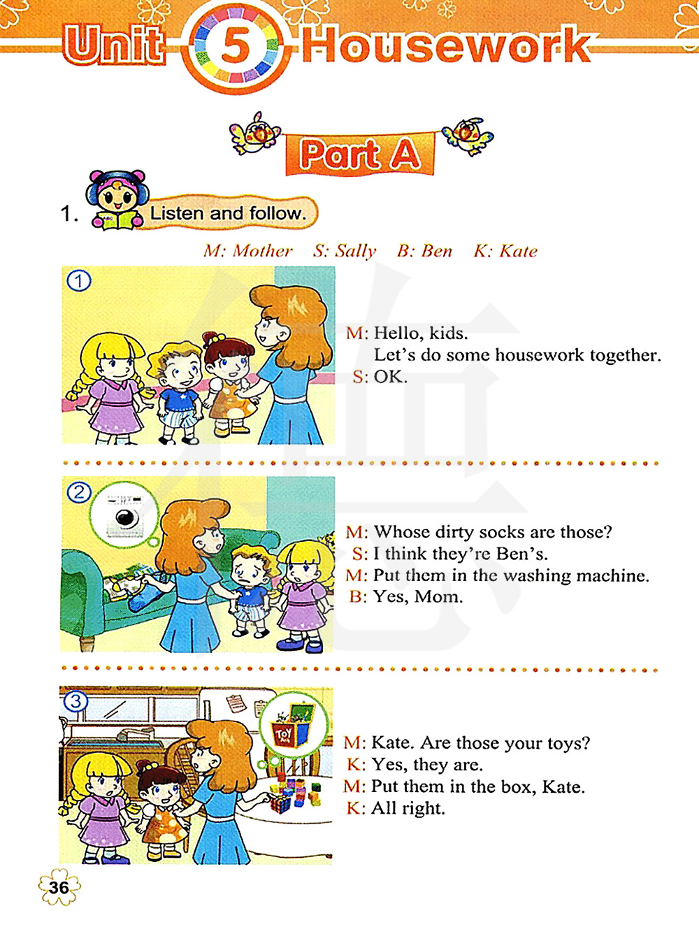 那是谁的脏袜子?我想是本的。把它们放进洗衣机。是,妈妈。