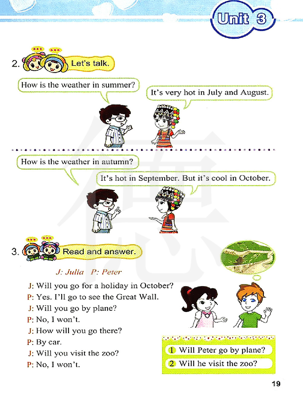 1 彼得将乘飞机去吗? 2 他将参观动物园吗?