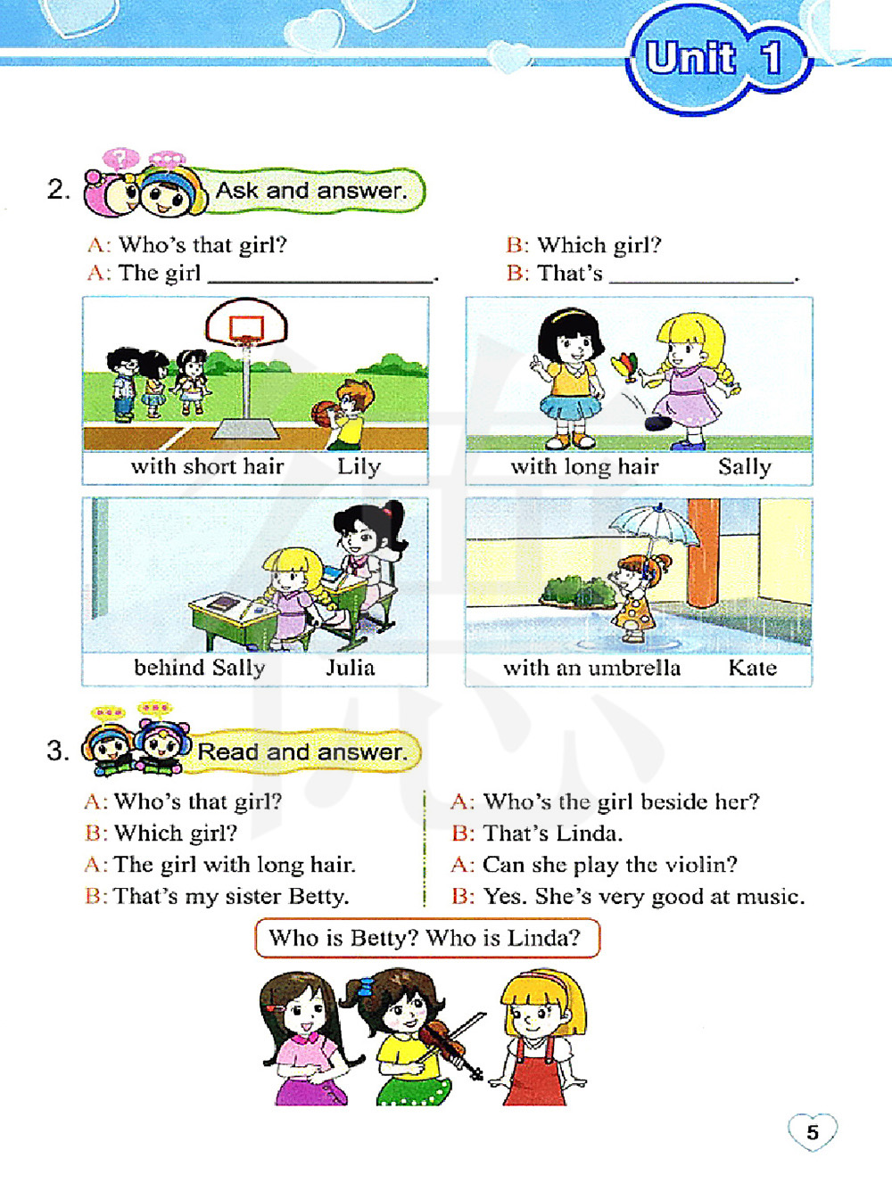 那个女孩是谁? 哪个女孩? 那个长头发的女孩。 那是我的妹妹贝蒂。