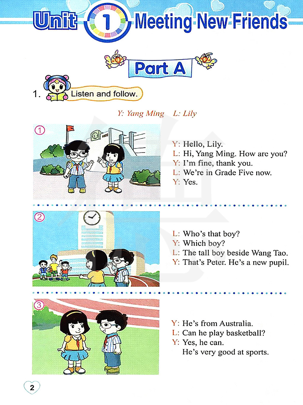 我很好,谢谢。 我们现在上五年级了。 是啊。