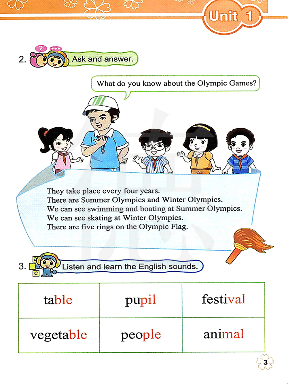 它们每四年举办一次。有夏季奥运会和冬季奥运会。夏季奥运会上我们可以看游泳和划船。冬季奥运会我们可以看滑冰。奥运旗帜上有五环。