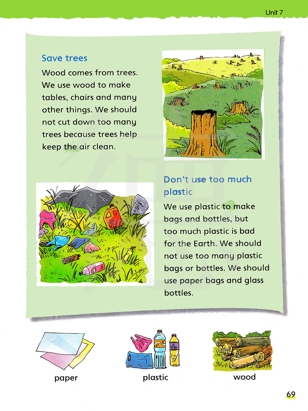 我们不应该使用太多的塑料袋或瓶子。