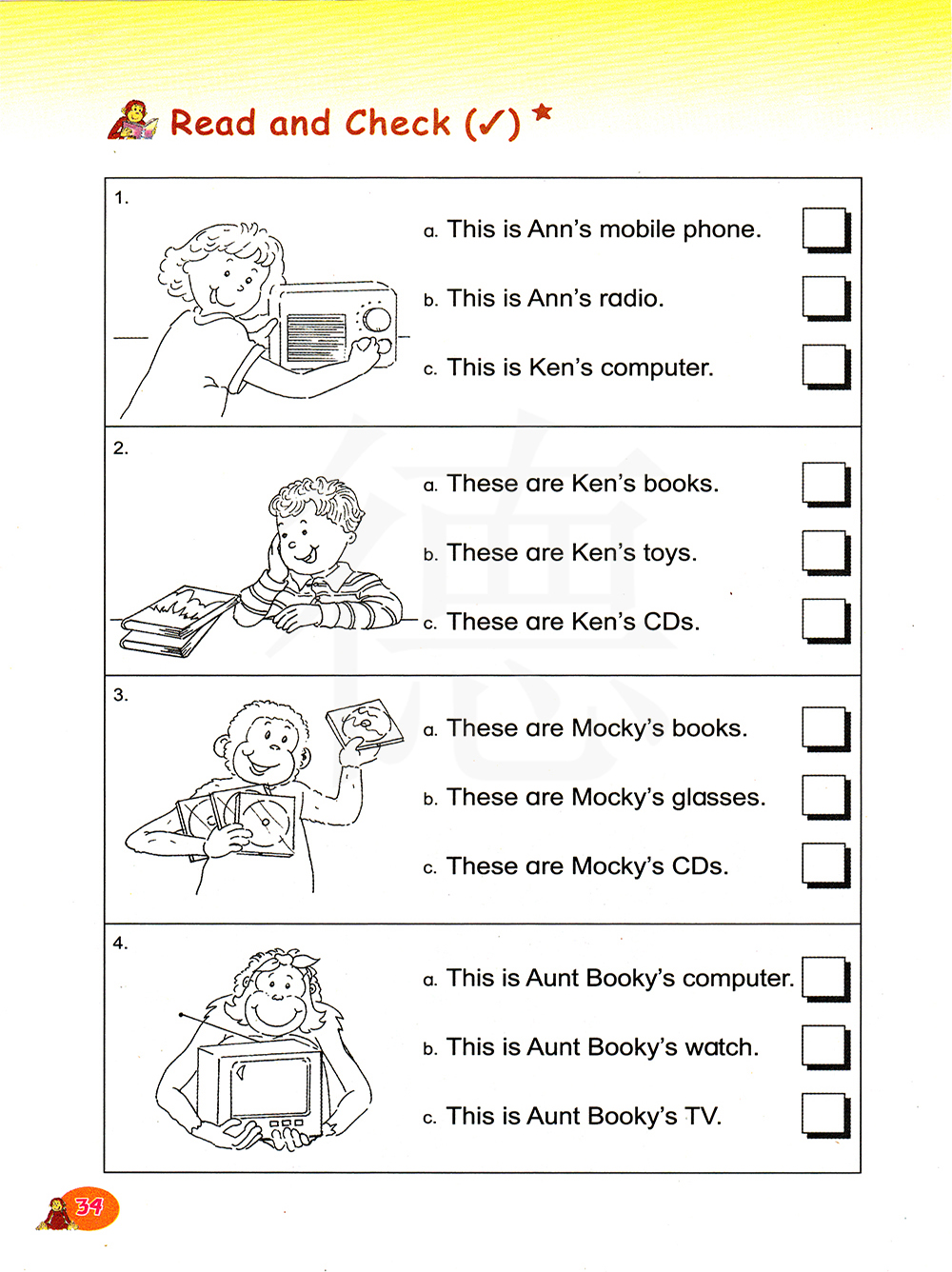 这是安的手机。 这是安的收音机 。这是肯的计算机