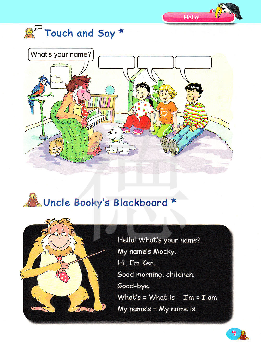 你好!你叫什么名字?我的名字叫莫奇。你好,我叫肯。