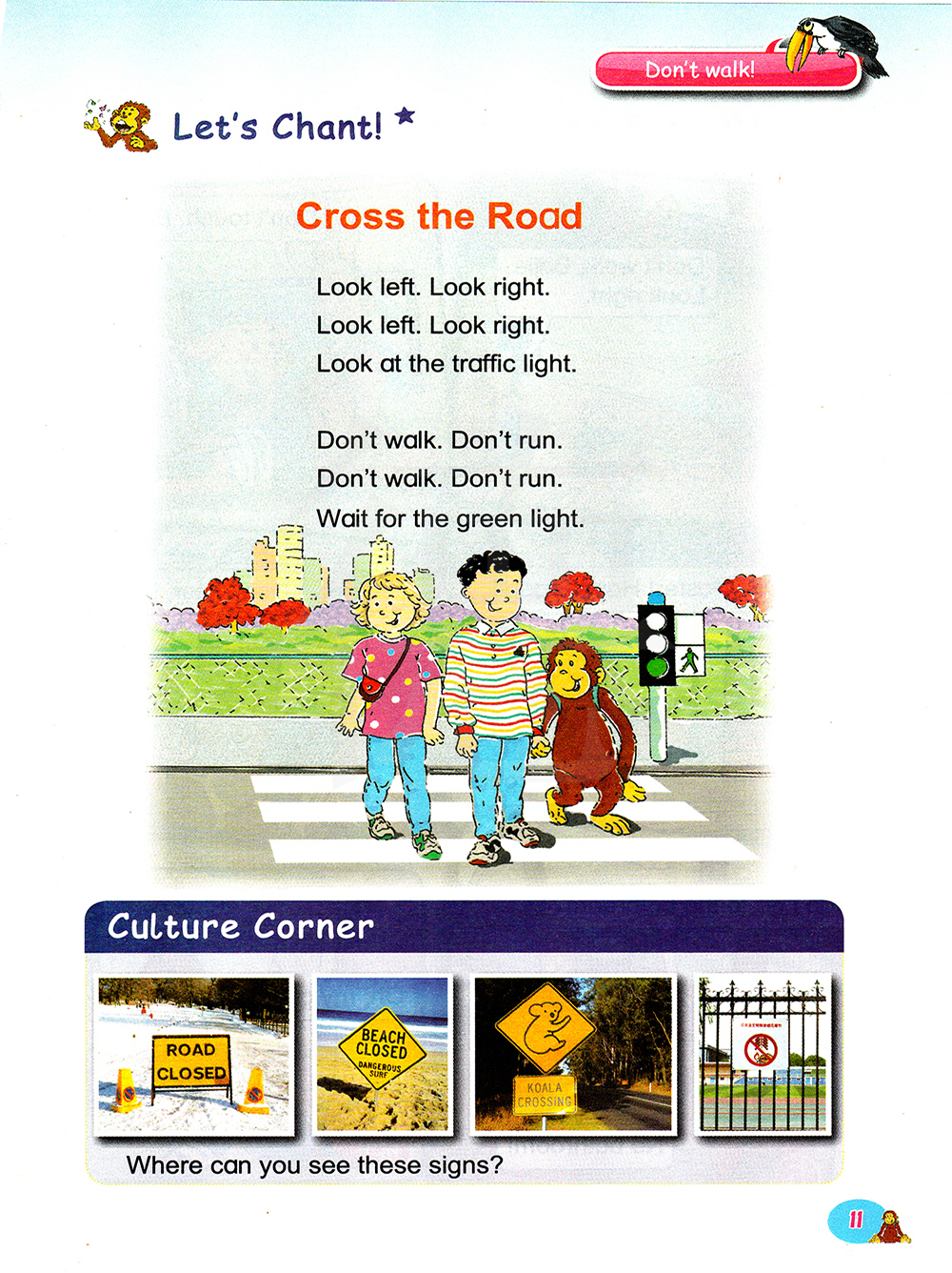 看看左边。看看右边。看看左边。看看右边。看看红绿灯,请勿行走,请勿奔跑,请勿行走,请勿奔跑,等待绿灯