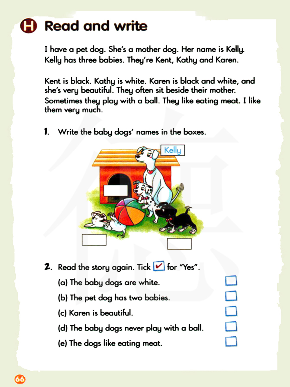 再读一遍故事,打勾,表示“是的”