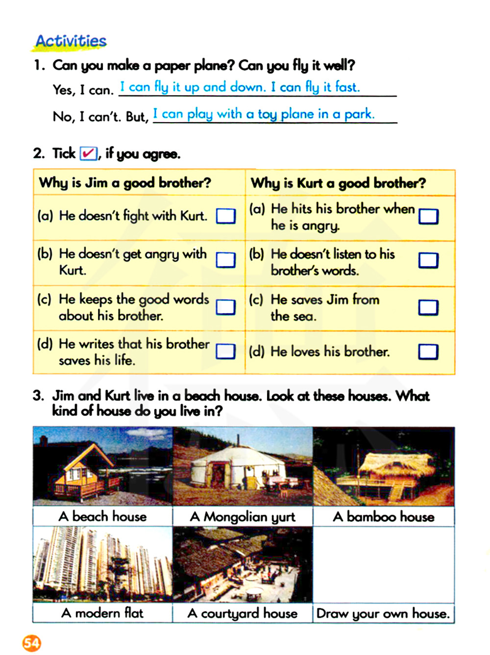 吉姆和库特信住在海滩的一所房子里,看这些房子。你是住在哪一类房子里?