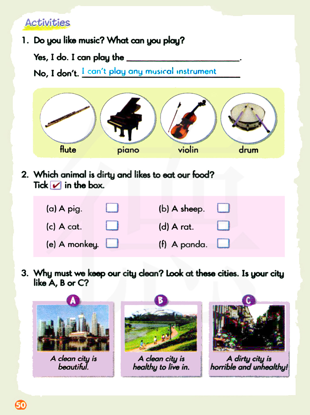 哪一种动物很脏并喜欢吃我们的食物,在方框里打勾.