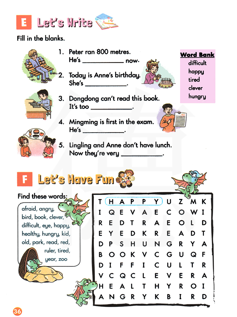 害怕的,生气的,鸟,书,聪明的,困难的,眼睛,快乐的,健康的,饥饿的,小孩,老的,公园,阅读,红色的,尺子,疲倦的,年,动物园