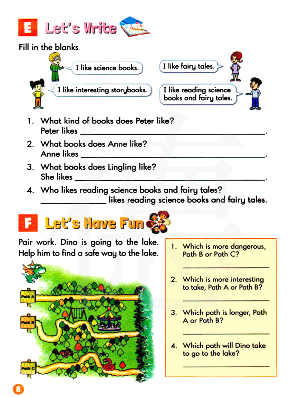 结对练习,迪诺要去湖边,帮助他找到去湖边的安全道路。