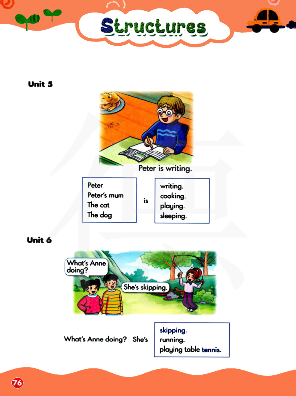安妮在做什么? 她在跳绳 。她在跑步 。她在打乒乓球。