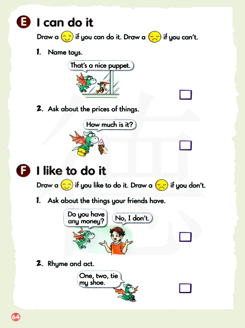 我喜欢做 。如果你喜欢做 就画一个笑脸、如果你不喜欢做 就画一个哭脸。
