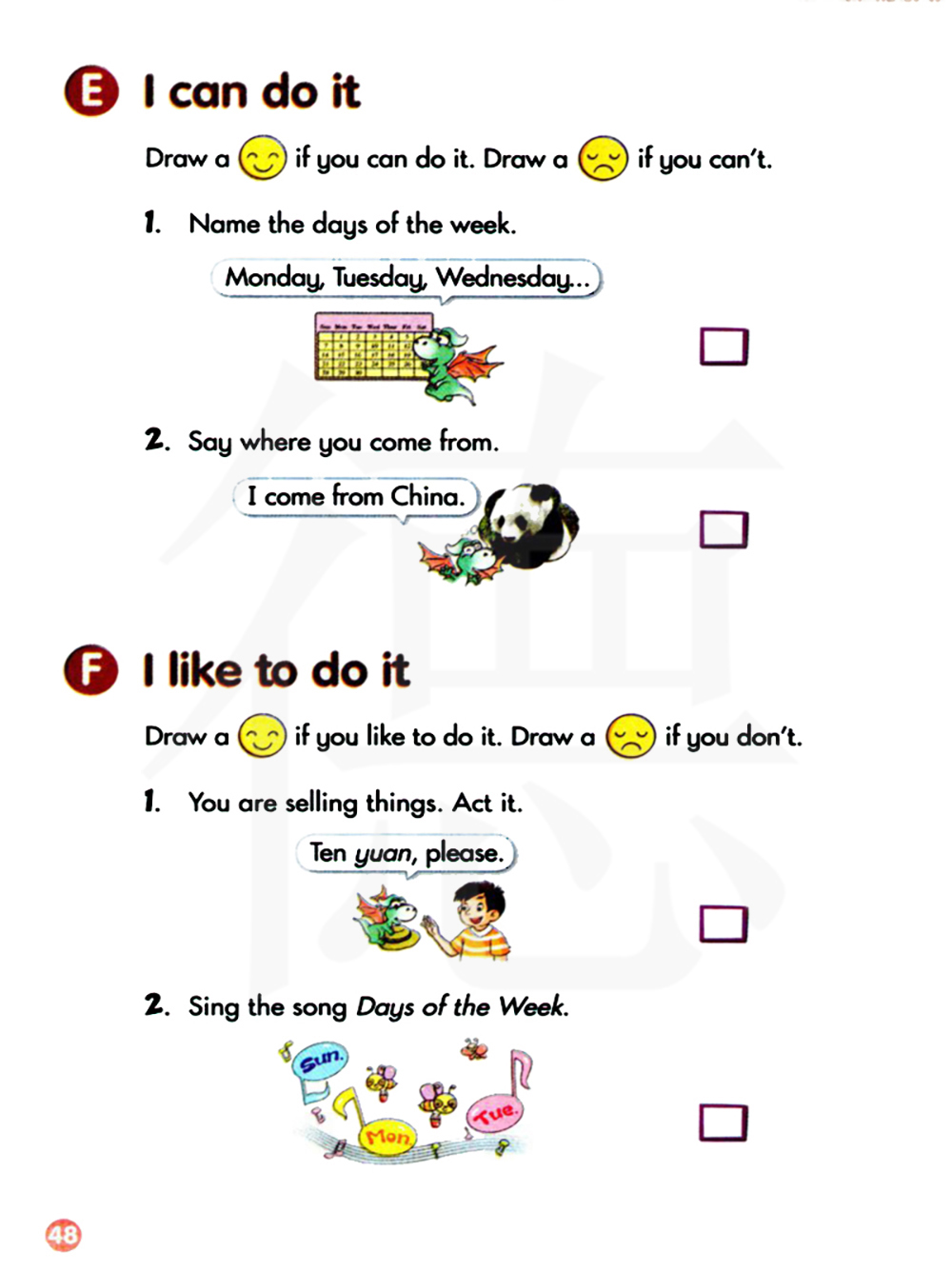 我喜欢做 。如果你喜欢做 就画一个笑脸。如果你不喜欢做 就画一个哭脸。