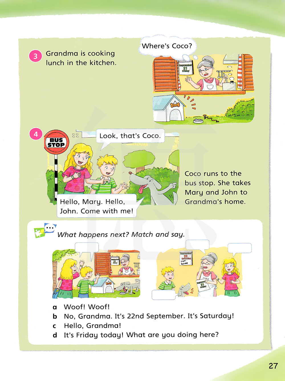 可可向公交站台跑去。她带着玛丽和约翰到奶奶家。