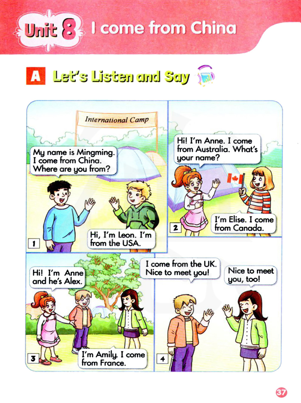 I ’m from China/Canada/America. 我来自中国 /加拿大/美国