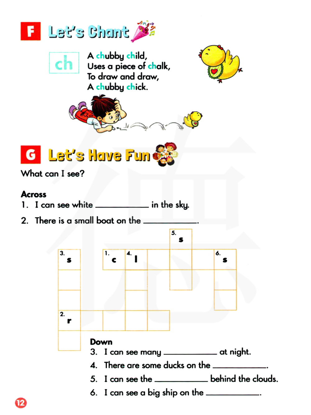 ch 。一个胖乎乎的孩子,用一支粉笔,画啊画,画出了一只胖乎乎的小鸡